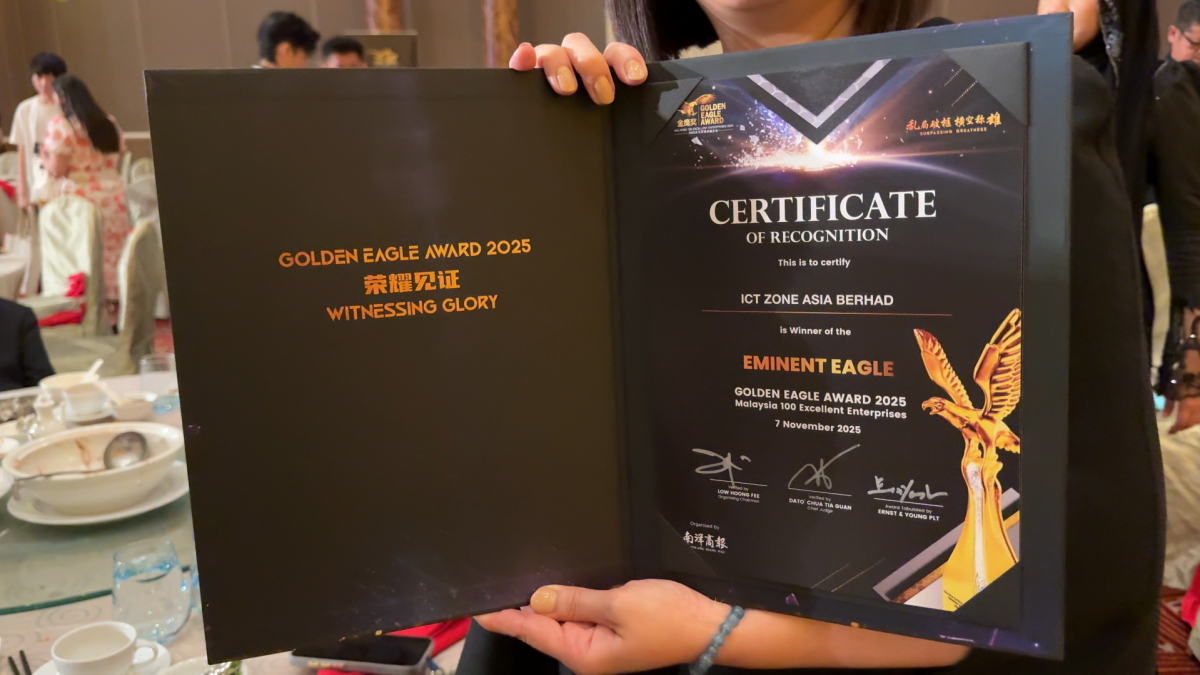 On 7 November 2025, ICT Zone was honoured with the Eminent Eagle Award at the 2025 Golden Eagle Awards, held at Genting International Convention Centre. The award recognises Malaysia’s top enterprises for excellence in innovation, growth, and leadership.